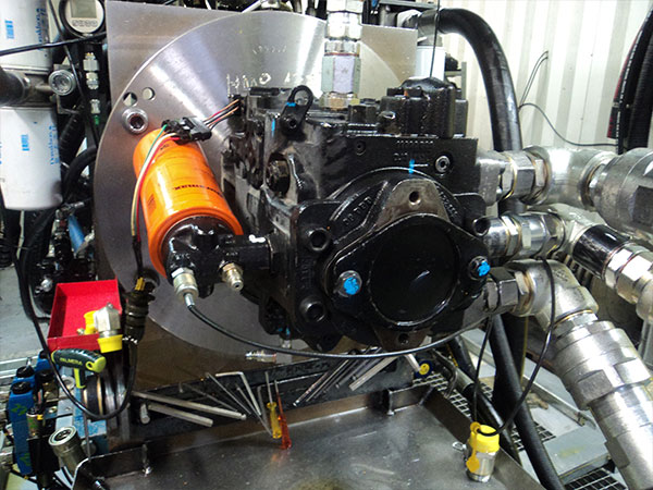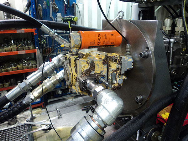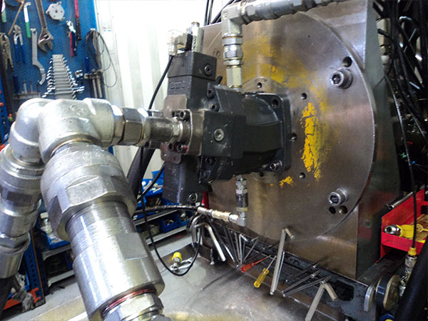 Disponemos de un banco de pruebas compuesto por un motor térmico de 380 C.V. de potencia, pudiendo hacer pruebas con un caudal de hasta 600 l/min. Atendiendo a los nuevos tiempos, el banco de pruebas está dotado de la última tecnología en cuanto a mediciones, teniendo instalado un módulo Hydrocom 6, de la prestigiosa firma alemana Hydrotechnik. Con este módulo garantizamos y podemos certificar la veracidad de las pruebas realizadas, además de poder emitir una gráfica donde poder ver la trazabilidad de la unidad chequeada.